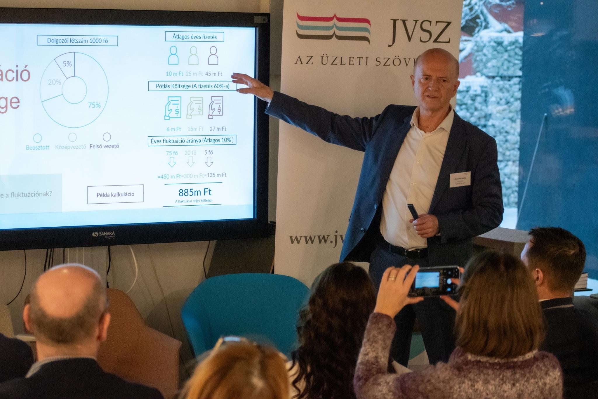 Tóth László, a Transearch ügyvezető igazgatója előadásában rámutatott: a munkavállalói megtartás a vállalati versenyképesség egyik kulcstényezője. A felmérések szerint a munkaerő mintegy harmada aktívan álláskereső, míg jelentős részük passzív módon nyitott a váltásra, ami komoly üzleti kockázatot jelent a szervezetek számára. Ahogy azok a passzív munkavállalók, akik már csak árnyékként vannak jelen a szervezetben, megúszásra játszva, esetleg már valamilyen betegséggel is küzdve.